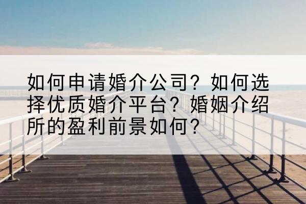 七台河怎么申请婚介公司-如何申请婚介公司?如何选择优质婚介平台?婚姻介绍所的盈利前景如何?