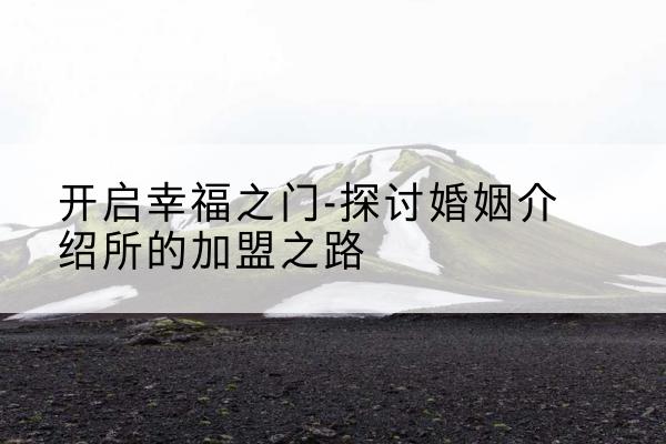 海南开婚姻介绍所加盟-开启幸福之门-探讨婚姻介绍所的加盟之路