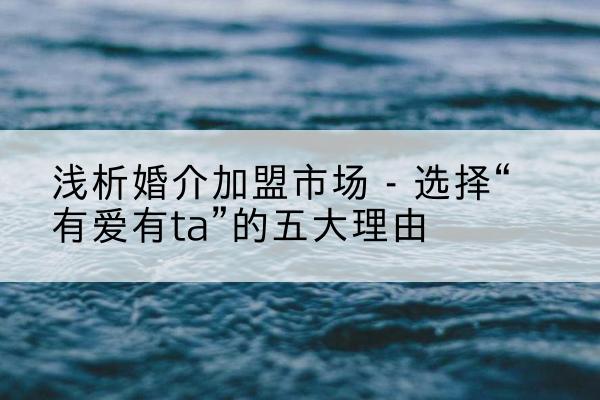 哪里婚介加盟好-浅析婚介加盟市场 - 选择“有爱有ta”的五大理由
