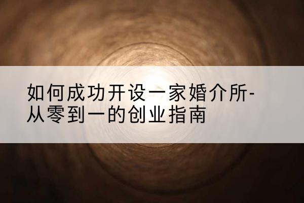 教你怎么开婚介-如何成功开设一家婚介所-从零到一的创业指南