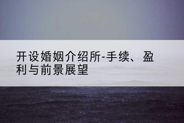 开婚姻介绍所要办什么手续-开设婚姻介绍所-手续、盈利与前景展望