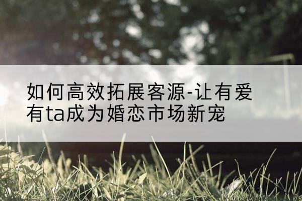开婚介所怎么找客源-如何*拓展客源-让有爱有ta成为婚恋市场新宠