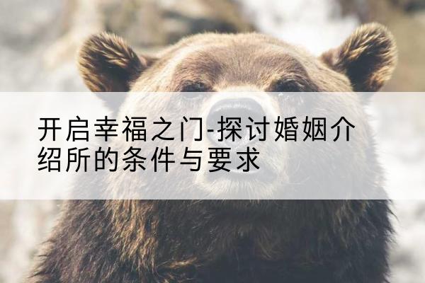婚姻介绍所-开启幸福之门-探讨的条件与要求