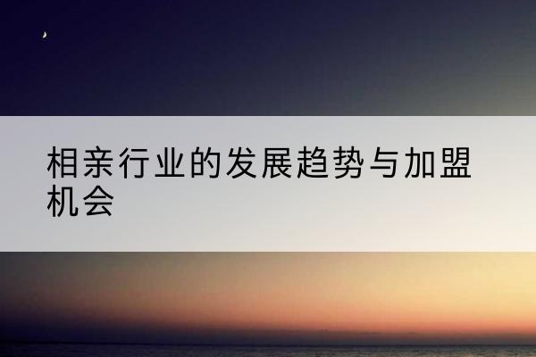 相亲加盟排行-相亲行业的发展趋势与加盟机会