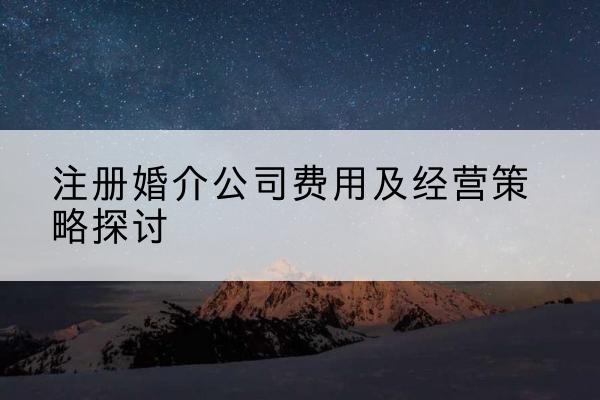 注册婚介公司需要多少钱-注册婚介公司费用及经营策略探讨