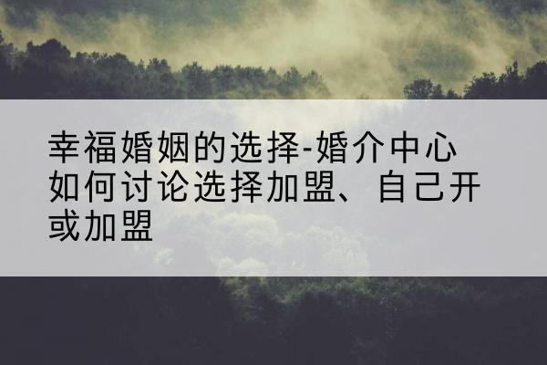 婚姻介绍加盟-幸福婚姻的选择-婚介中心如何讨论选择加盟、自己开或加盟