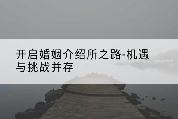 我想开个婚姻介绍所-开启婚姻介绍所之路-机遇与挑战并存