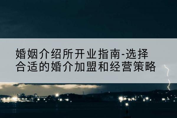 哪里婚介加盟好-婚姻介绍所开业指南-选择合适的婚介加盟和经营策略